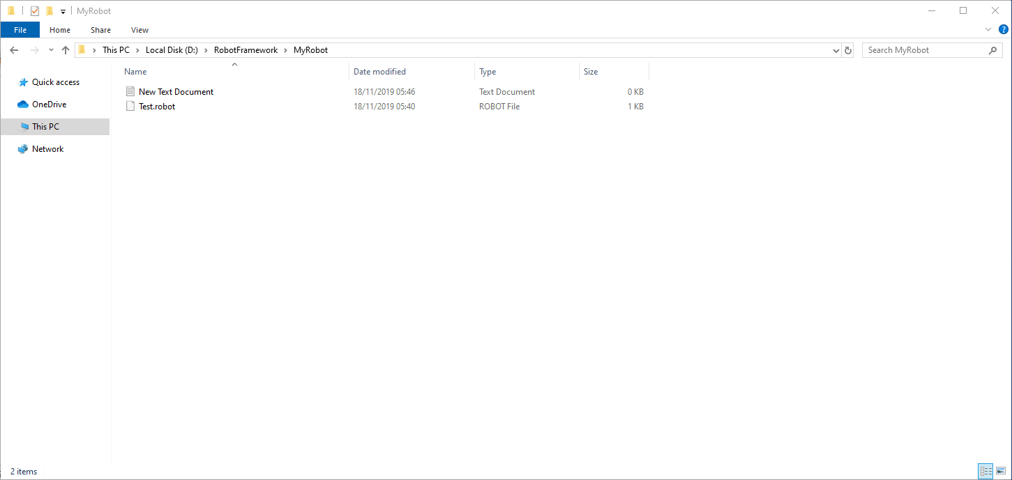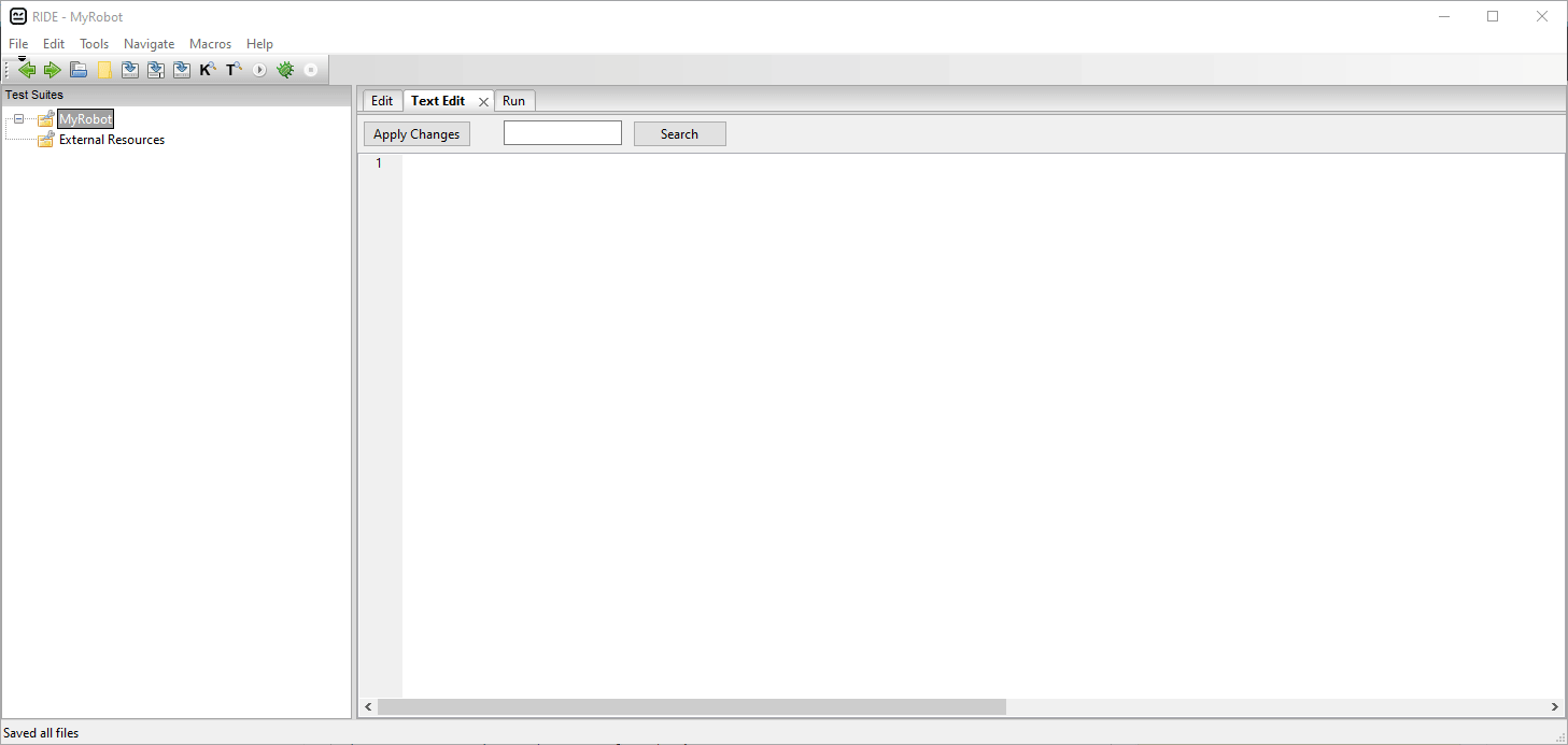 直接在工作中手动添加test.robot文件。然后,您将能够直接编辑和保存测试用例