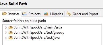 }我已经创建了两个测试用例,一个是使用spock框架,另一个是使用junit 5。但是当我使用gradlew -test时,它只运行用Junit 5编写的测试用例。下面是构建路径。