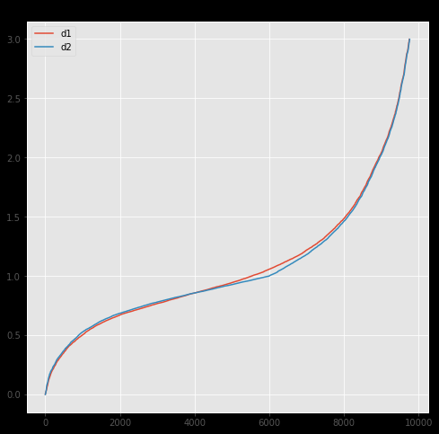 关键是您为d2使用了另一个模型,所以Kolmogorov测试预测第二个数据集的分布与d1的不一样,尽管它看起来完全相同。尽管它不是一个概率方法,但是您可以考虑使用np.allclose来比较这两个数据集。