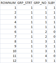 ROWNUM GRP_STRT GRP_NO SLBY