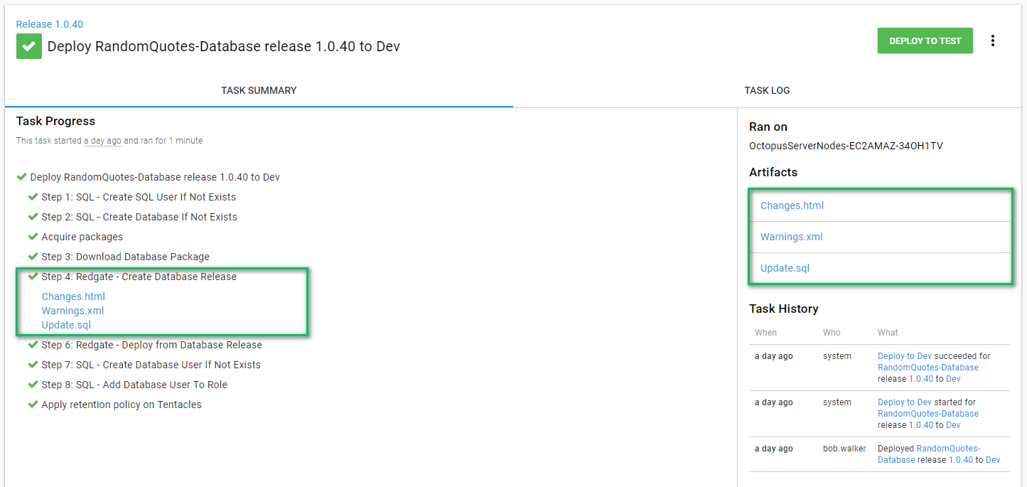 最后一步是部署数据库发行版。此步骤接受导出数据路径中的增量脚本并在目标服务器上运行它。这就是我建议将导出路径放在变量中的原因。