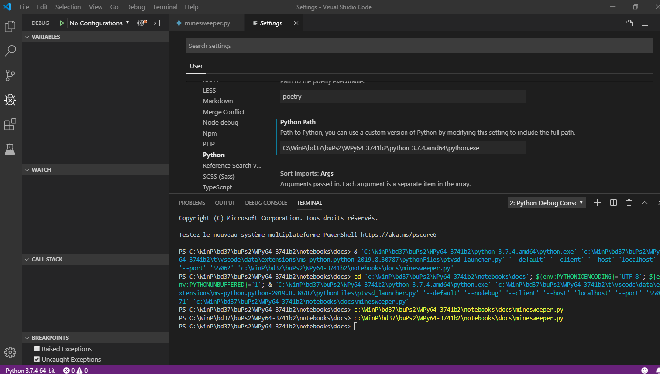 我给vscode-python我的python路径,但它不使用它来运行我的.py文件,除非在调试模式.我错过了什么?是虫子吗?