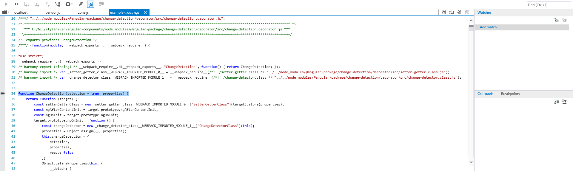 如您所见,代码来自角包/变更检测,这包括在内,因为我使用的是角包/棱镜。