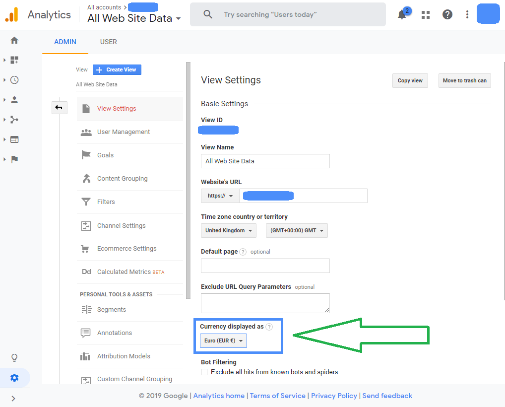 一旦你推动正确的货币价值,你也可能需要调整在谷歌分析中显示为设置的货币。