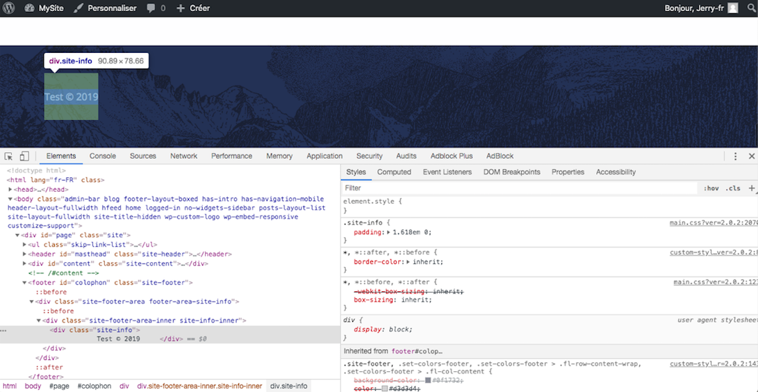 我目前正在创建一个网站并使用非常好的Reykjavik主题。首先,我创造了一个儿童主题。现在,我想对儿童主题做一些修改。在此模板中,可以个性化页脚,但不能更改其位置。我提供给页面检查员检查它的位置,但什么也找不到.