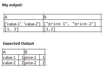 "B": [["price-1", "price-2"], [1,2]]