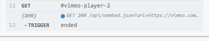当视频自然结束时,“ends”事件将传递给应用程序中的包含组件。VimeoPlayer组件呈现一个id '#vimeo-player-2‘的容器,这就是我试图触发’and‘事件的原因,希望它会冒泡起来,并被捕捉到注册观看的视频。在我的柏树规范中: