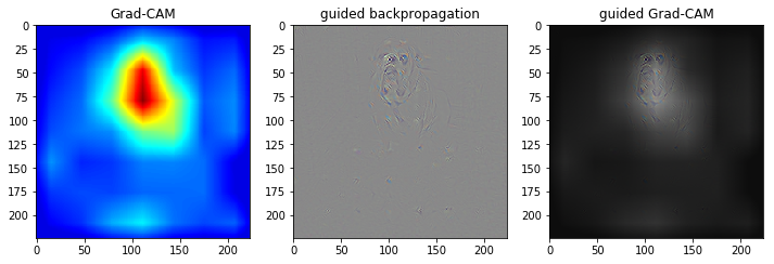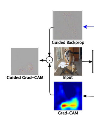 为了将两者的优点结合起来,我们通过点乘将引导的反向传播和Grad-CAM可视化结合起来(Grad-CAM首先通过双线性插值对输入图像的分辨率进行采样)。