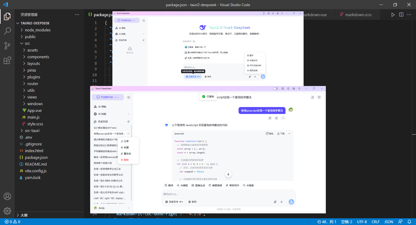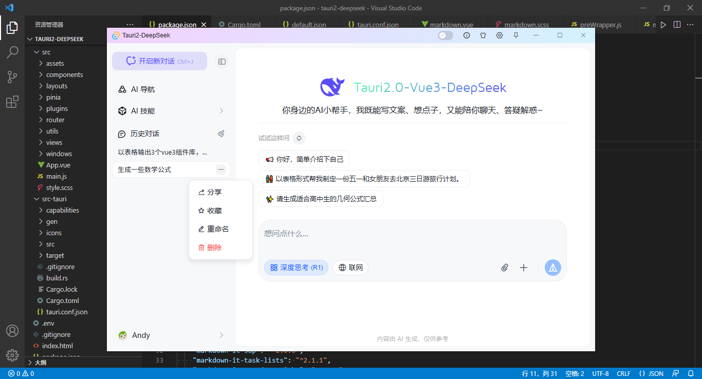 2026爆肝研发tauri2.10+vite7+vue3.5+openi调用deepseek搭建高颜值客户端ai流式对话系统。