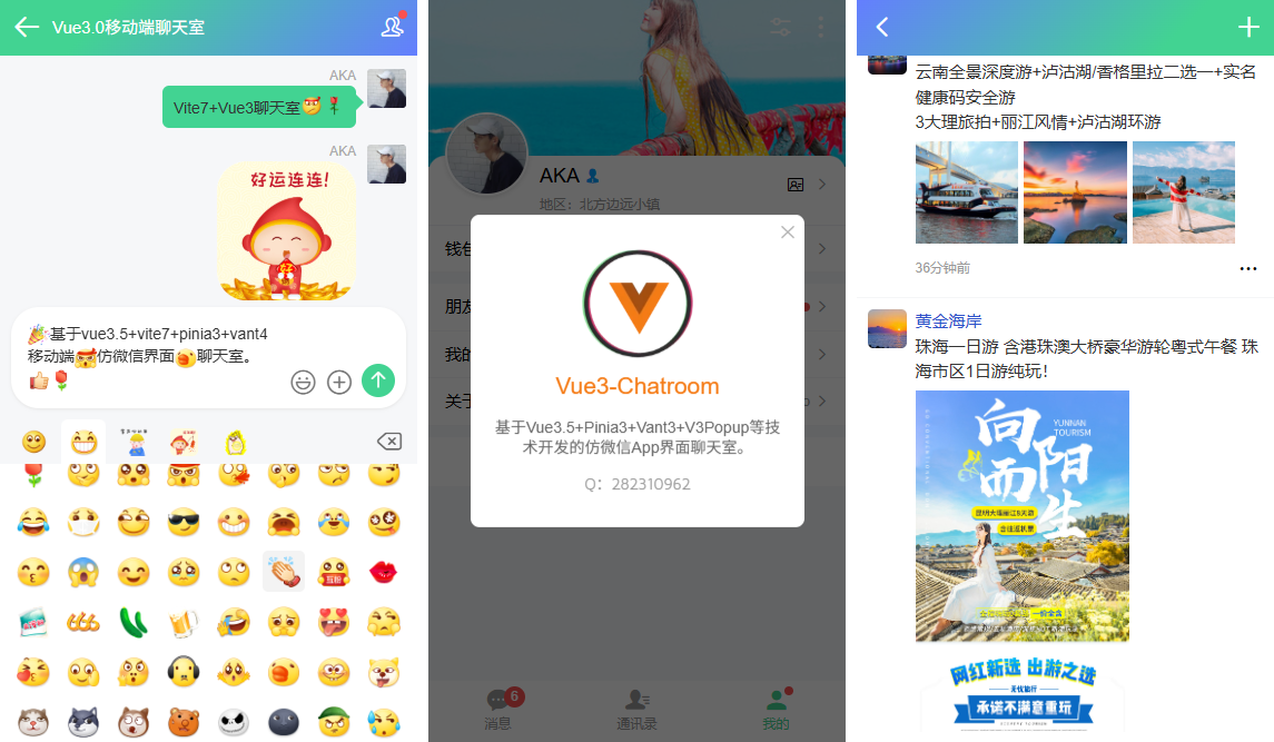 2026年重磅研发vite7+vue3+pinia3+vant4高颜值移动端仿微信界面聊天实例Vue3Chatroom。
