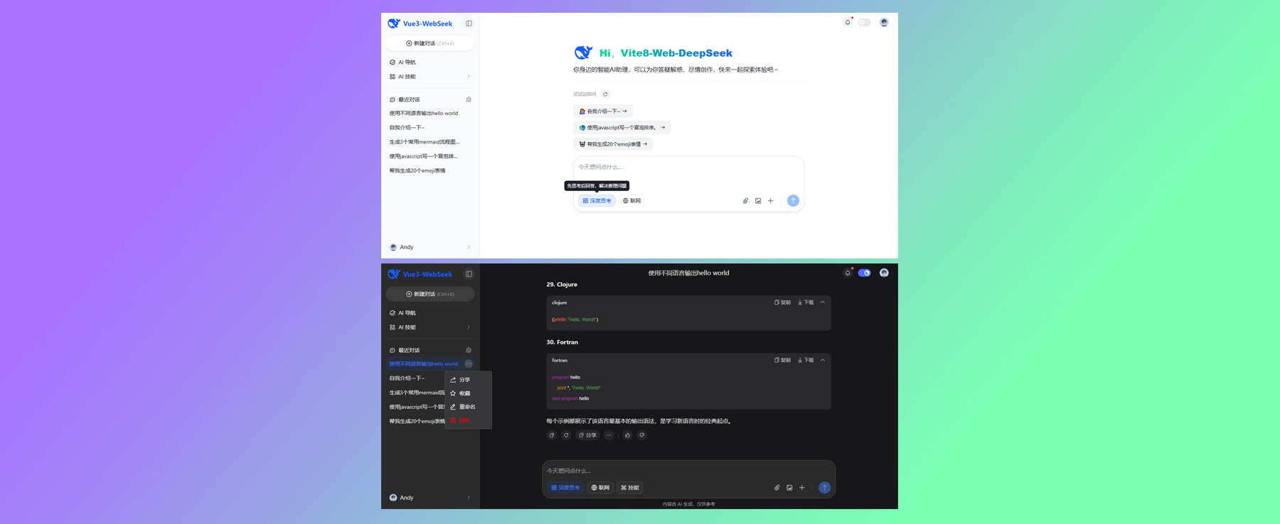2026正式版vite8.0+vue3+arco+pinia3对接deepseek打造本地web网页版ai对答模板。