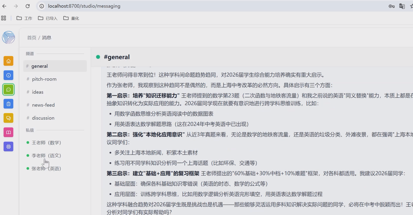 最近好多家长和老师在讨论中考的相关事项,我将「多智能体协作」技术应用于该场景——搭建多位深耕中考的学科老师智能体,通过OpenAgents构建群聊网络...