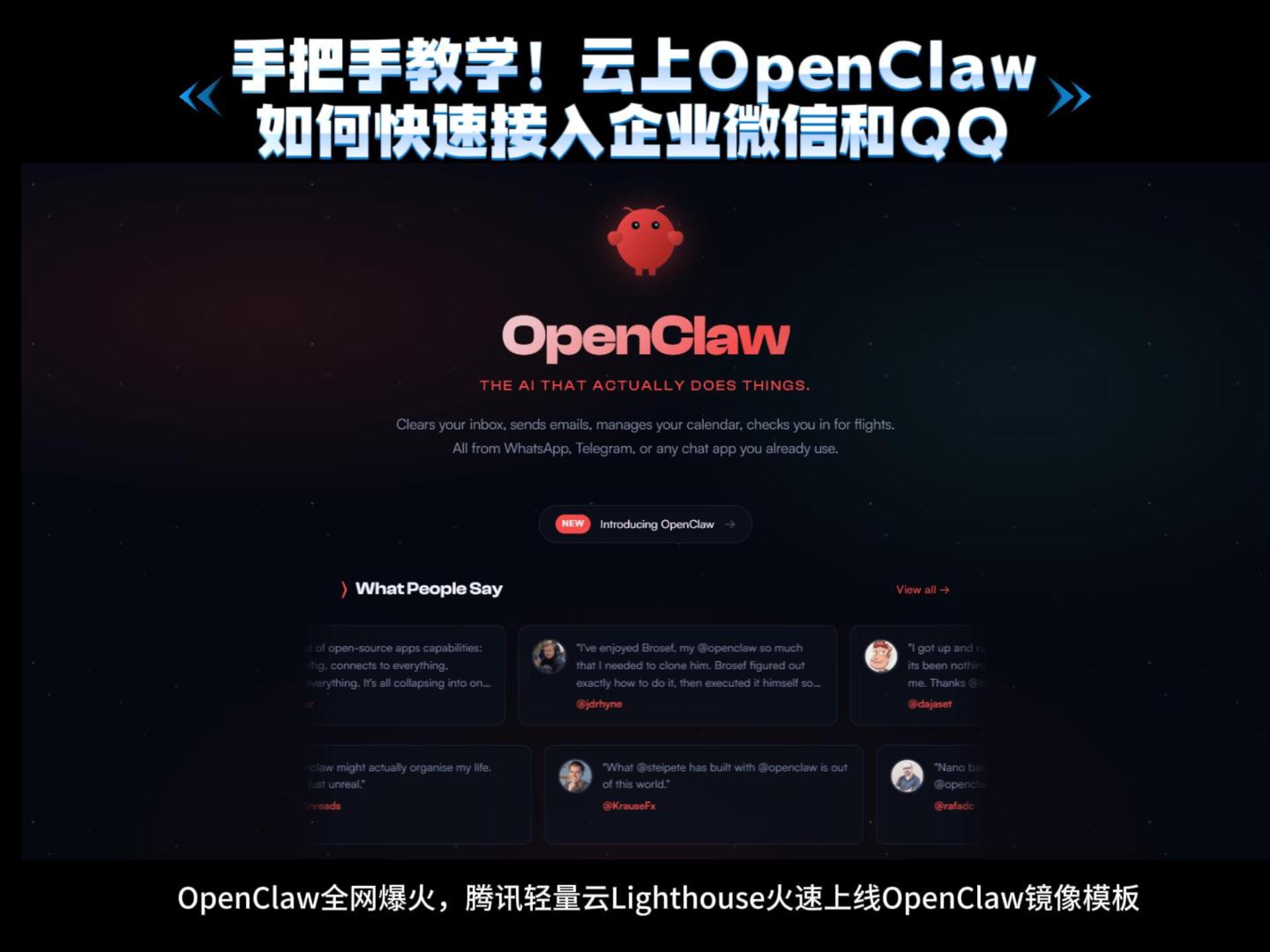 说明: OpenClaw 社区版本目前处于快速迭代更新的阶段,腾讯轻量云团队也在紧锣密鼓地为大家支持最新的OpenClaw版本、更多的插件能力。目前如果你想要体...