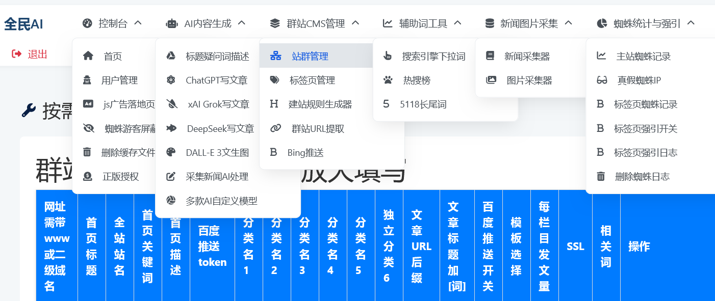 第三代谷歌站群智能SEO矩阵系统。本系统深度集成自主开发的AI内容生态平台,实现从数据采集到内容生产再到搜索引擎优化的全链路自动化运营。(注:AI内容平台功能详...